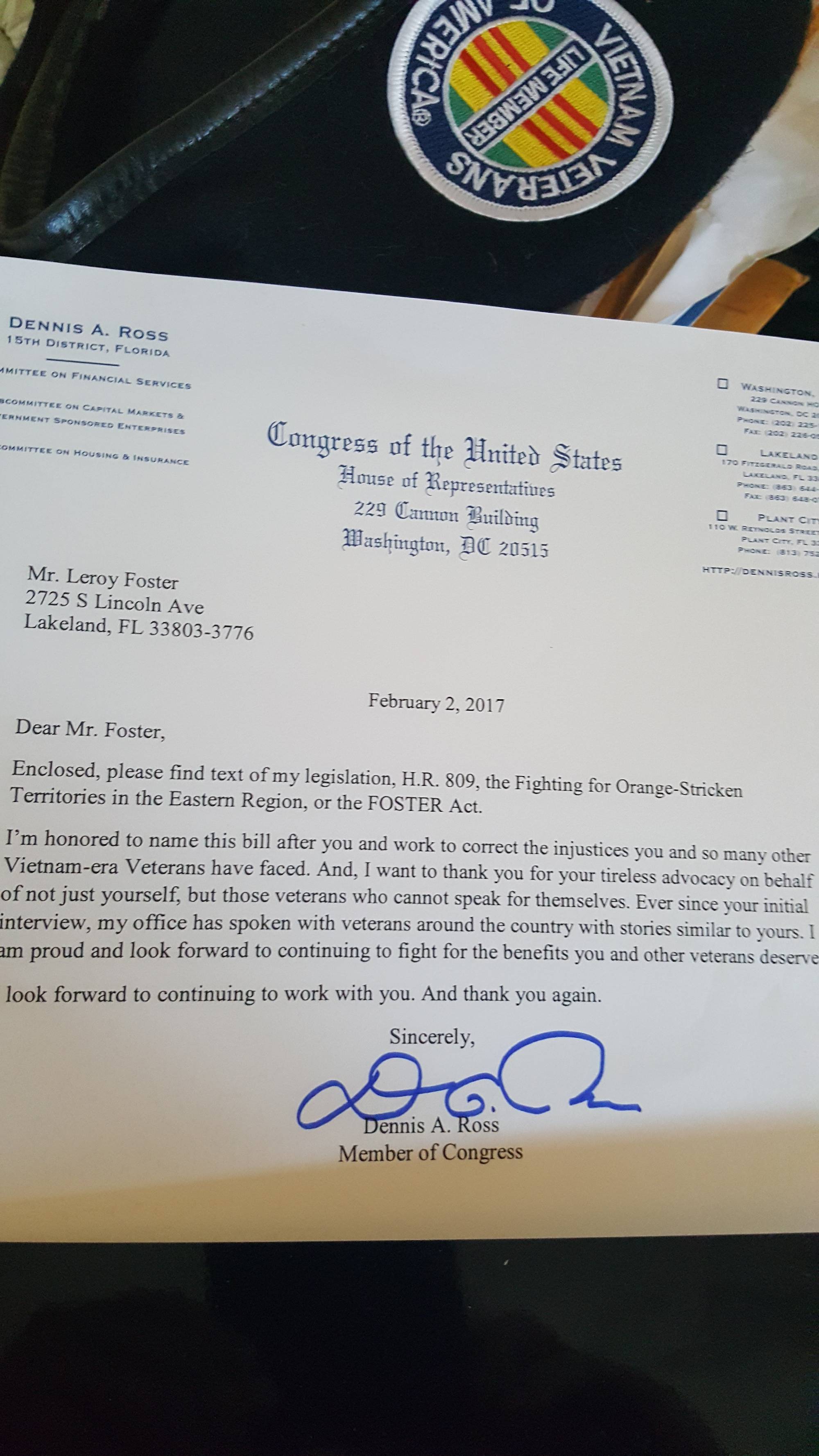 Dennis Ross : Ross Asks VA Secretary to Help Agent Orange-Stricken Veterans Mar 2017