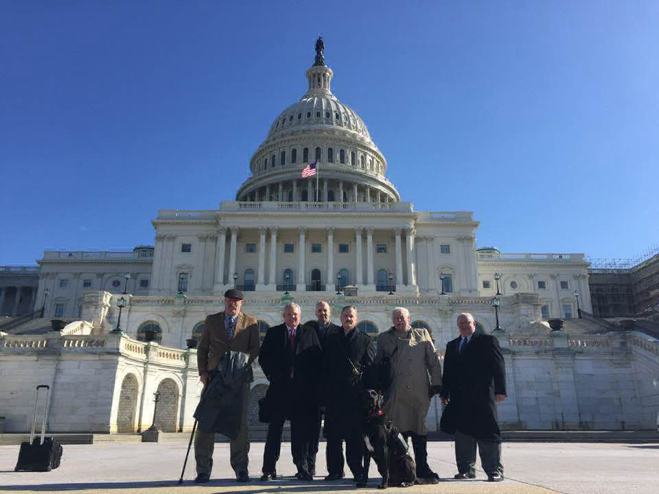 From L to R Brian Moyer, Rob Maness, Brian O'Callaghan, Jim Kuiken with his Service Dog "Freedom".and Ed Ball.